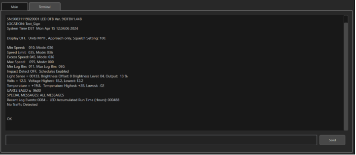 - Scanning for and logging into signs via Bluetooth or direct serial connection.