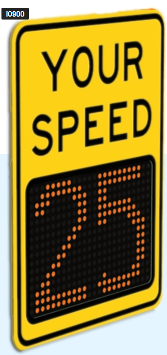 iQ900 radar speed sign: 9" full-matrix LEDs, 450 ft range, custom messaging, data tracking for traffic safety