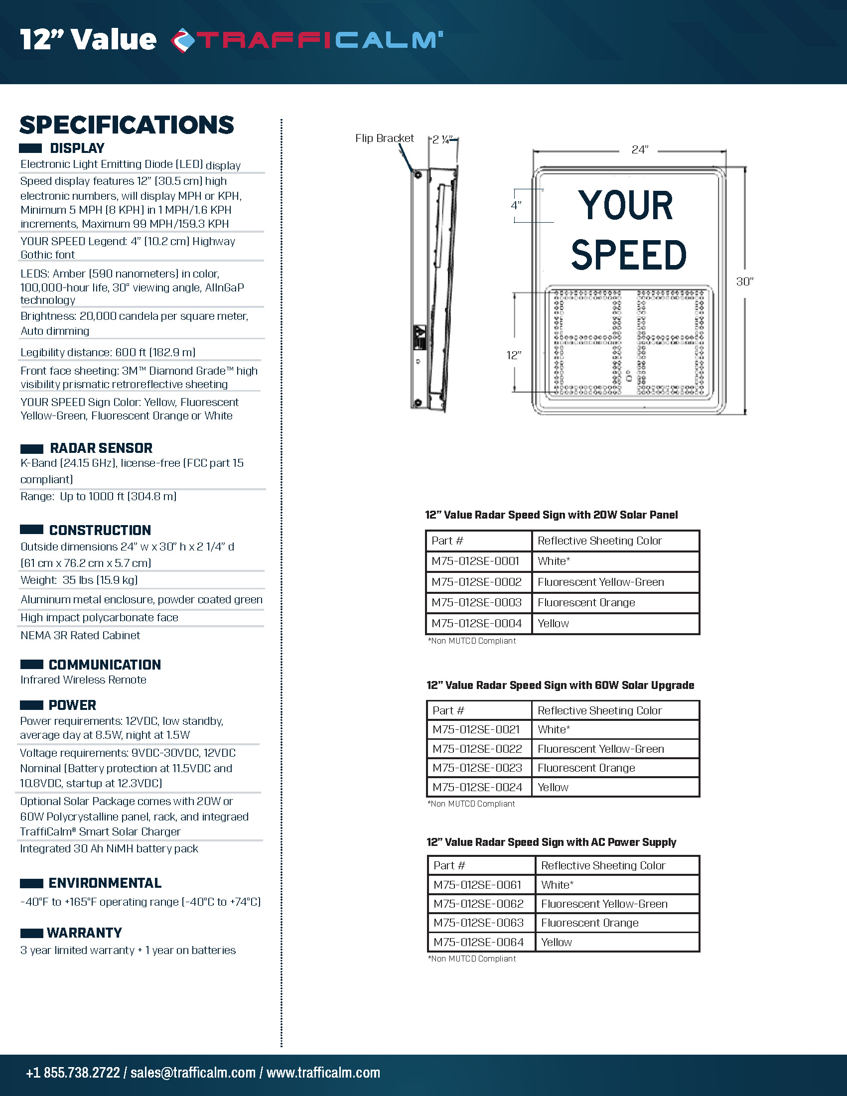 - M75-012SE-0024: 12″ Radar Speed Value Sign – Yellow – 60 W Solar System